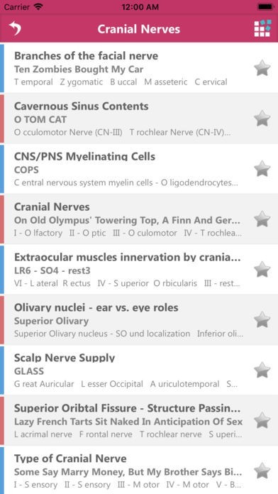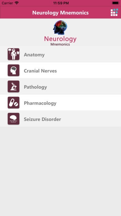 App Storeより引用Neurology Mnemonics provides you with clever acronyms, stories, and memory tricks, on your fingertips. Subjects range from Anatomy, Cranial Nerves, Pathology, Pharmacology, and Seizure Disorder.