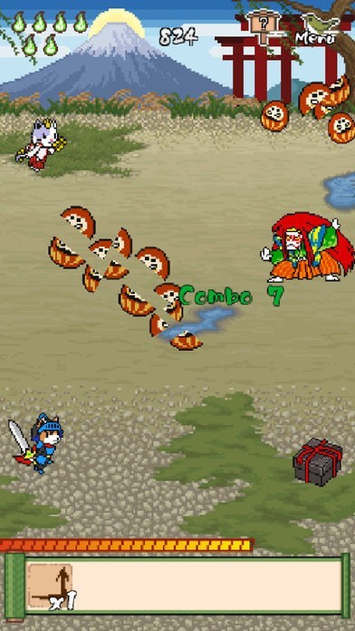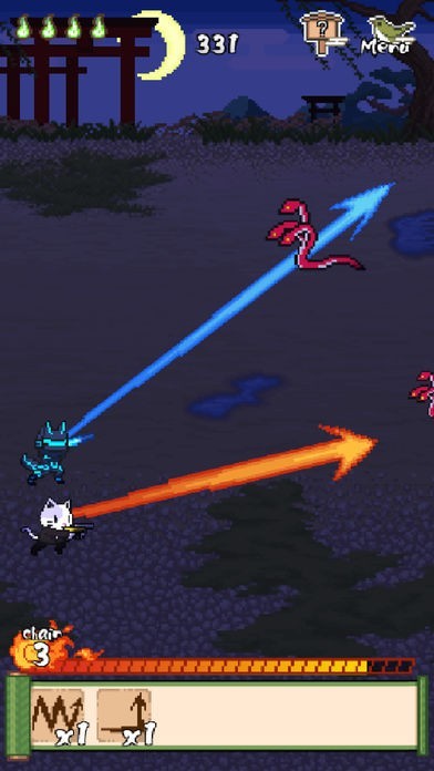 タップ&ドラッグで2匹の斬撃ルートを定めて、わんさか出てくる妖怪を退治しよう!