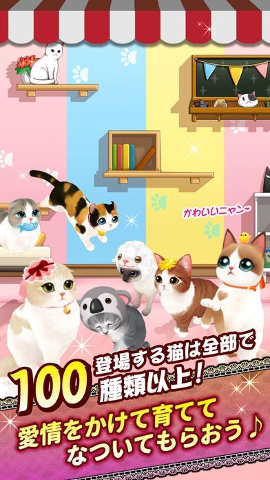 本作には特徴的な機能として交配機能があります。フレンドになったユーザーの猫との間で交配を行うことができ、新たな子猫を生まれさせることができます。また、フレンドのカフェの手伝いやランキングといったソーシャル機能も搭載されています。