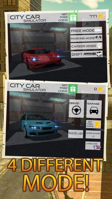 App Storeより引用Realistic Graphics! Drift Mode, Parking Career Mode, Target Career Mode and Free Drift Mode!