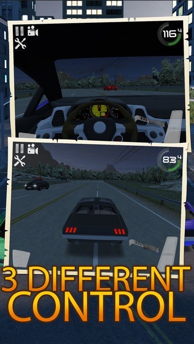 App Storeより引用現実的な夜市グラフィック。ドリフト モード、駐車場のキャリア モード、ターゲット キャリア モード。