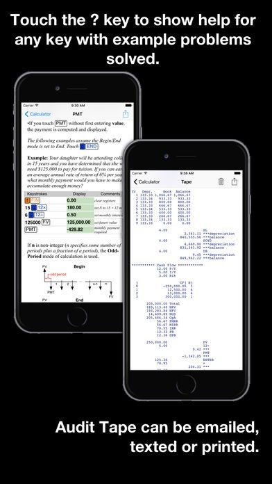 •Built-in contextual help: Touch the ? key for a description of any keyboard function with examples of use. If you are just learning or can't remember how to use a function- just touch the ? key. Includes tutorials on how to use reverse Polish notation (RPN) and how to solve time value of money problems.