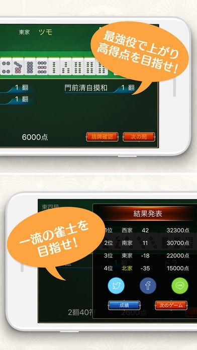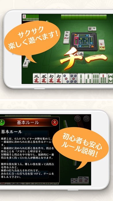 ・麻雀初心者から上級者まで、超簡単操作だからすべてのユーザーがサクサク楽しむ事が出来ます。