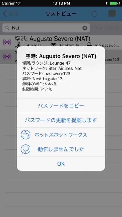 アプリには世界中の空港に設置されているWi-Fiパスワードが収録されています。出張や旅行で空港を利用するとき、アプリのパスワードを入力すれば、すぐにインターネットを使うことができます。