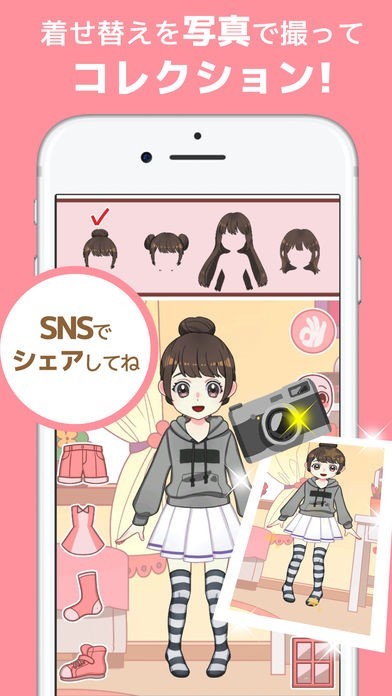 女の子の着せ替えが可愛く出来上がったら、コーデを皆にお披露目するためにSNSでお友達に送信し、情報を共有することができます。どんどん可愛いコーデを作ってお友達に送りましょう。