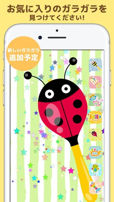 赤ちゃんから1歳くらいまでのお子様は、動くものや聞きなれない音によく反応するので、ぐずりだしても、アプリを起動すれば、簡単にお持ちのスマホがすぐにがらがらとして使えます。