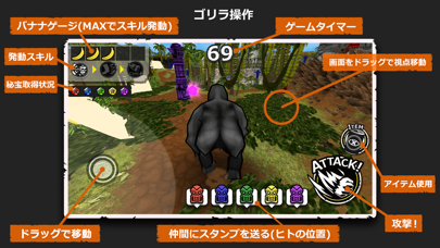 『ゴリラ』は群れのチームワークと、バナナを食べることで習得出来る多彩なスキルで『ヒト』を追い詰めよう。