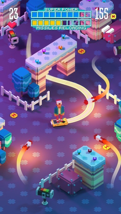 「TwistyBoard」はブロックによって作られているキャラクターをタップ操作で誘導して、ミサイルをよけながら進んでいくアクションゲームアプリです。左右にタップ操作をすればキャラクターを自由自在に操作することが出来るので、追跡してくるミサイルに捕捉されないように先を考えながら上手に誘導しながら進んでいきます。ステージを進めば進むほど30種類用意されている新キャラクターを開放することが出来るようになっているので、お気にいりのキャラクターを見つけて自由に操作することが出来るようになります。用意されているのはいずれもカラフルな雰囲気の全7種類のステージです。