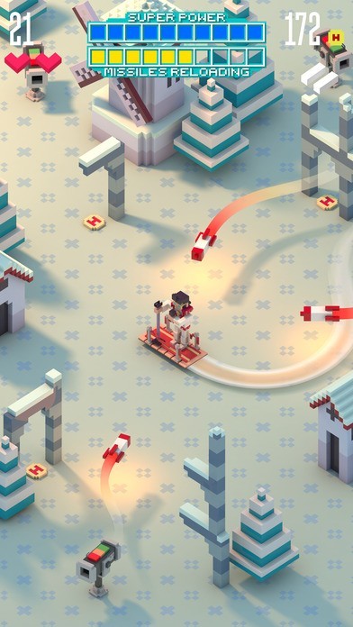 左右のタップ操作でキャラクターを誘導して、追跡してくるミサイルから逃げ続ける!