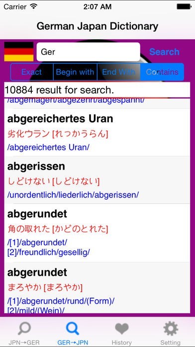 和独・独和辞典(Japanese German・German Japanese Dictionary)のスクリーンショット
