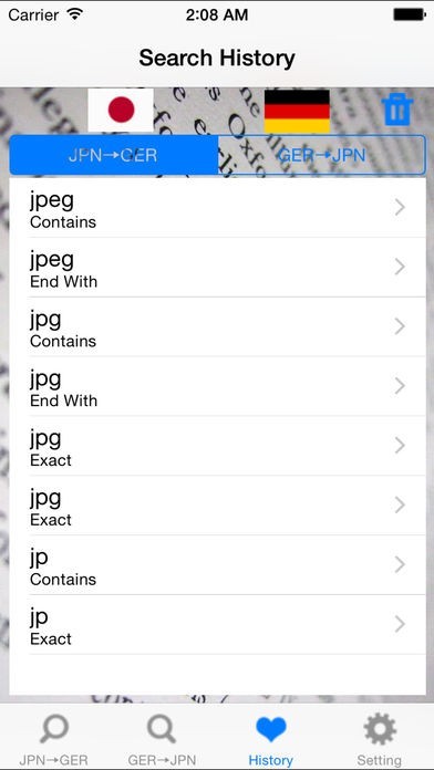 検索履歴は最大で50件まで表示でき、最近調べた言葉であれば、すぐに見つけ出すことが出来るようになっており、急いでいたり、受験勉強などを効率よく進めたい方にはおすすめです。