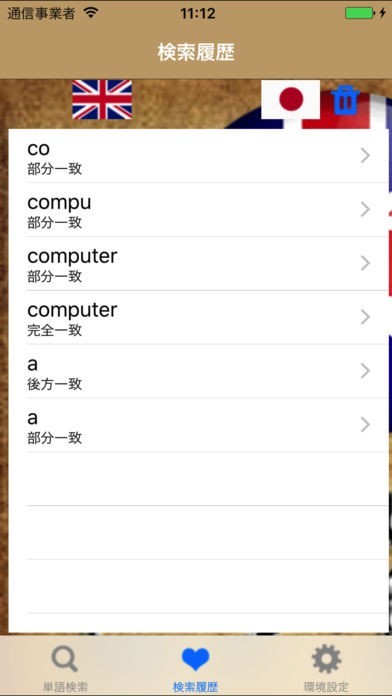 ●連続する辞書引きに役立つ履歴表示、履歴画面から自動的に検索結果を再表示機能できる。履歴項目をクッリクすると、対応検索画面自動的に検索機能。