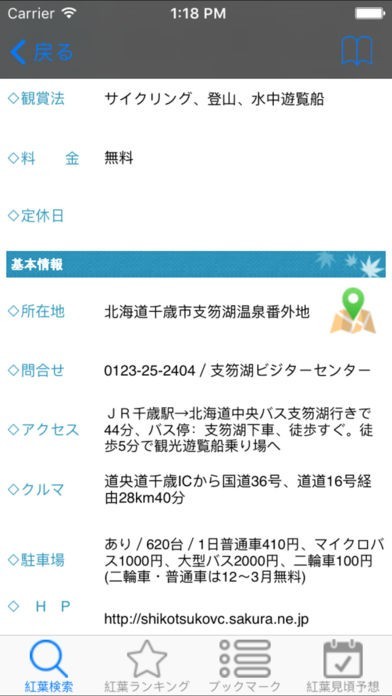 秋になれば紅葉の名所に行きたくなると思います。しかし、名前と場所だけを知っていても交通の便などが分からなく行く手段などを決めかねることもあると思います。このアプリではそれぞれの名所に関する詳細な情報が載っており、訪れるうえで手助けをしてくれます。