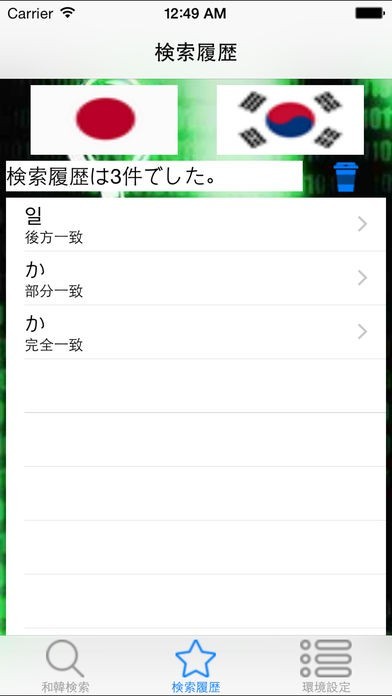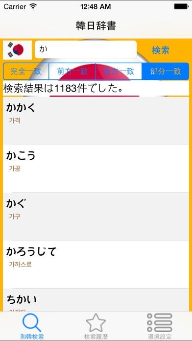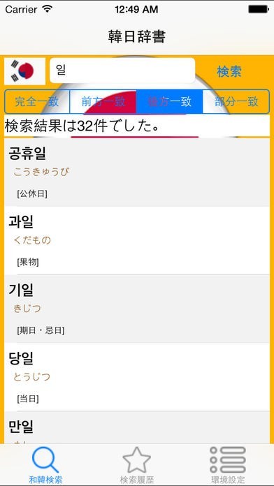 「後方一致」「完全一致」「部分一致検索」など検索方法が豊富にあるので、自分が一番探しやすい方法に設定してワードを探すことが出来、特に初心者には探しやすいアプリになっています。