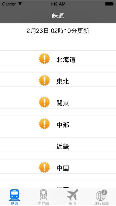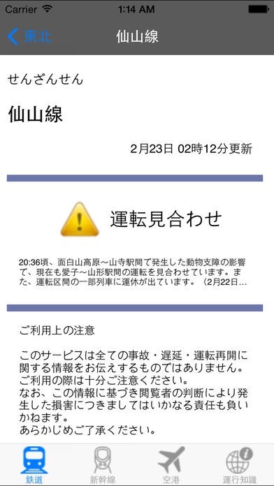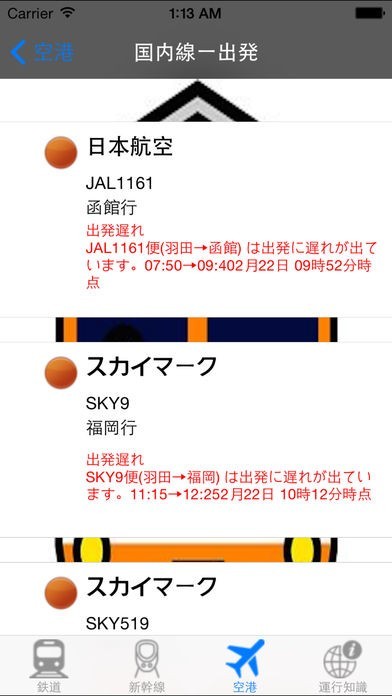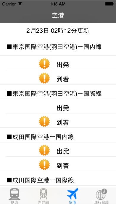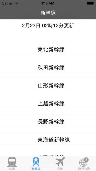 空港や新幹線の運行状況もリアルタイムで確認出来る