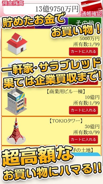 預金口座のお金で回せるガチャはコンプリートする度に、給料がアップ!