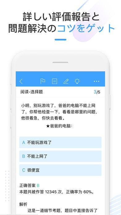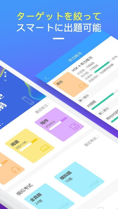 中国語能力試験の対策ができます。分からない点をすぐに調べられて便利です。