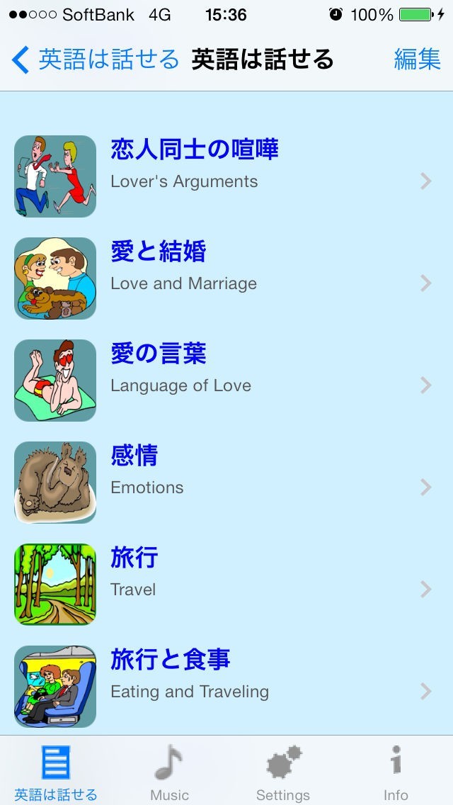 このアプリには、英語初心者が最初に覚えておきたいフレーズがたくさん入っています。何気ない世間話や恋愛、旅行で使える便利なフレーズなどを学習できるのでとても便利です。