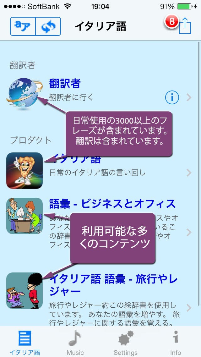 App Storeより引用この音声機能付き、翻訳・フレーズ集は、ネイティブスピーカーが実際に日常的に使用している会話をご紹介しています。イタリア語力を高めるには、リアルな会話表現を知ることがとても重要です。このソフトに掲載されているフレーズのほとんどは、学校で習ったことがない表現ばかりです。教科書では学べないリアルなイタリア語を学びましょう。