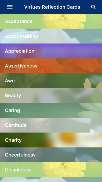 The VIRTUES REFLECTION CARDS offer an opportunity to reflect on, practice and