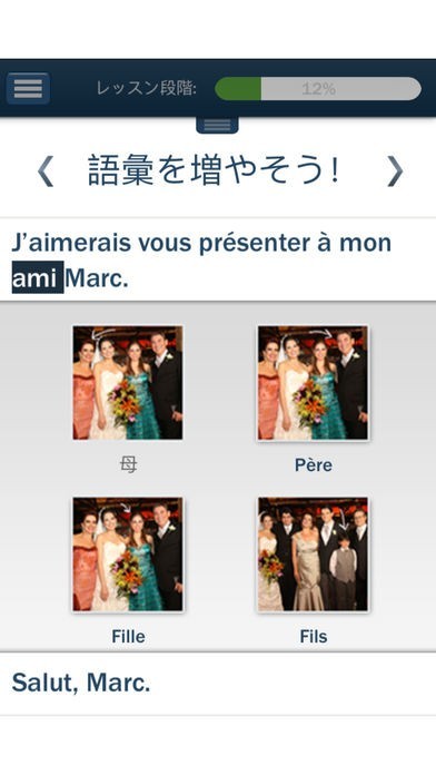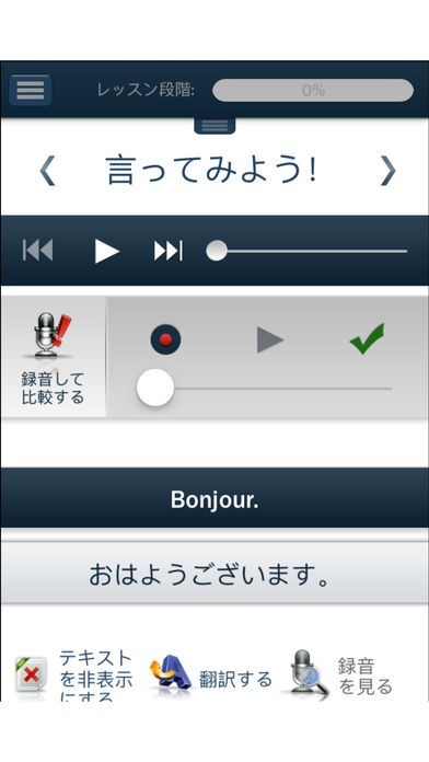 すべてのコンテンツはアプリケーションに保存され、言語を学ぶ準備ができていれば優れた反応ができます。アプリケーションの実行にワイファイまたは3Gネットワークに関連づけする必要はありません。 Hello-Hello フランス語 があれば、時間を場所を選ばずボキャブラリーのレッスンと実践ができ、外国語でのコミュニケーションに必要なすべてのスキルの開発が可能です。すべてのレッスンがネイティブスピーカーの録音ですので、正しい発音を学ぶことができます。
