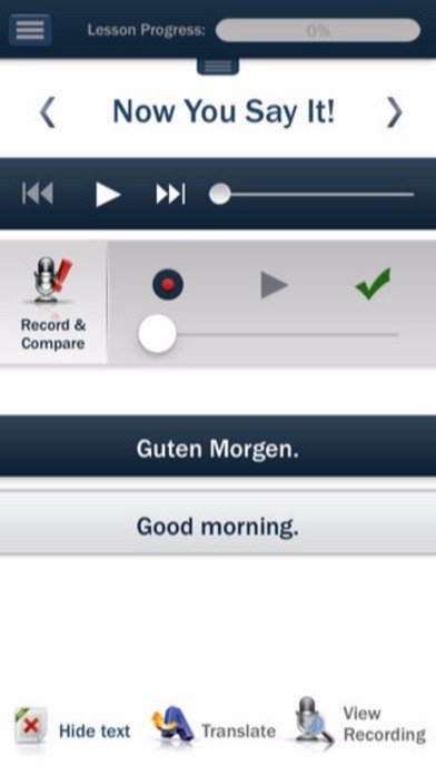 すべてのコンテンツはアプリケーションに保存され、言語を学ぶ準備ができていれば優れた反応ができます。アプリケーションの実行にワイファイまたは3Gネットワークに関連づけする必要はありません。 Hello-Helloドイツ語 があれば、時間を場所を選ばずボキャブラリーのレッスンと実践ができ、外国語でのコミュニケーションに必要なすべてのスキルの開発が可能です。すべてのレッスンがネイティブスピーカーの録音ですので、正しい発音を学ぶことができます。
