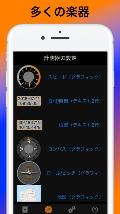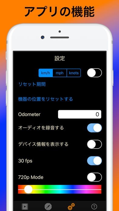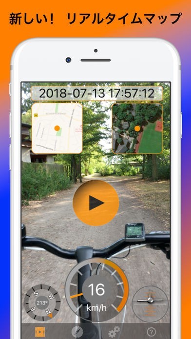App Storeより引用アクションCamは、組み込みカメラで記録された時点で、地図、速度、位置、高度、G-force、コンパス、時刻、日付などの計測器ディスプレイをアクションビデオムービーに直接レンダリングします。 「アクションカム」はあなたのデバイスを究極のアクションカメラに変身させます。これらのインストゥルメントは画面に表示されるだけでなく、MPEG-4ビデオにレンダリングされます。これらの「ヘッドアップディスプレイ」機器は、構成可能であり、額縁内で自由に移動可能である。