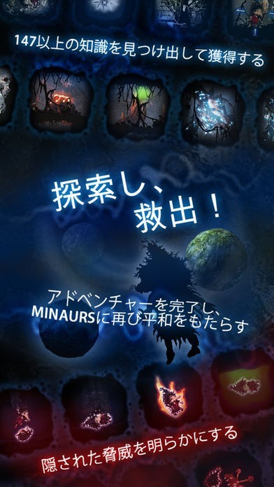 App Storeより引用多種多様な惑星の様々なアンダーグラウンドの世界へ探検に行く、非常にユニークなアドベンチャーゲームです。ゲームの世界全体を通してミナールと共に旅をし、新世界、ユニークな環境と住人を発見しましょう。地底をくぐって安全にミナールを導き、知識を獲得しマイティーリソースを集めます。さまざまなクエストを完了し、キャラクターを開発し、さまざまな動物から盗品を回収し、仲間を救出してください。ミナール国家を再統一し、伝説になりましょう!