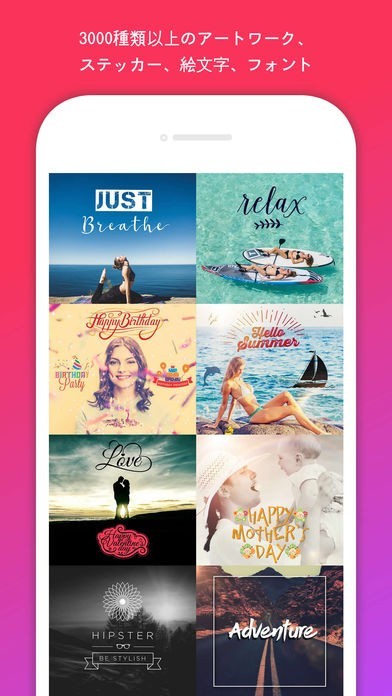 様々なフィルターが収録されているので、スマホに保存している写真をお洒落にアレンジする事が可能ですよ。ステッカーの追加に対応していて、画像も自由に編集出来るようになっています。