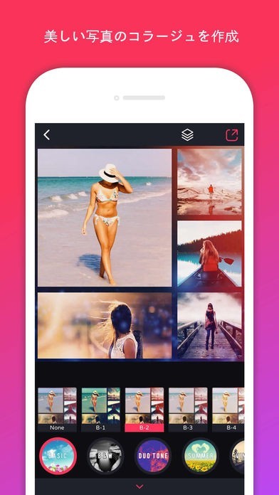 20種類以上のフォトコラージュレイアウトでSNSに投稿する写真の編集にも便利です。また、種類が多いので編集も楽しく飽きずにする事ができますよ。デザインのテンプレートも標準装備されているのでとても使い勝手が良いのも魅力です。