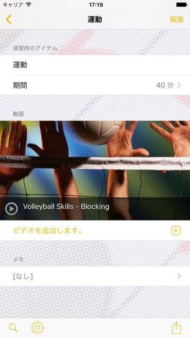 練習メニューの項目にはYouTubeや手持ちのビデオを添付することができるので、テキストに加えてメニュー内容のビデオを添えれば分かりやすい練習計画が簡単に完成します。