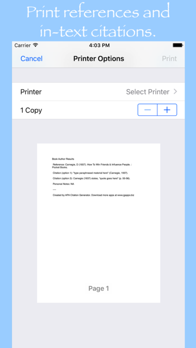 印刷機能が用意されていて、ピックアップした引用文や参考文献が簡単にシェア出来るようになっています。コピーする枚数や印刷するページが細かく調節出来るのも特徴ですね。