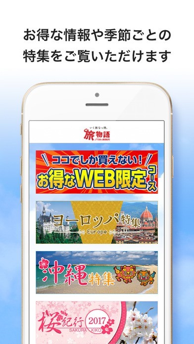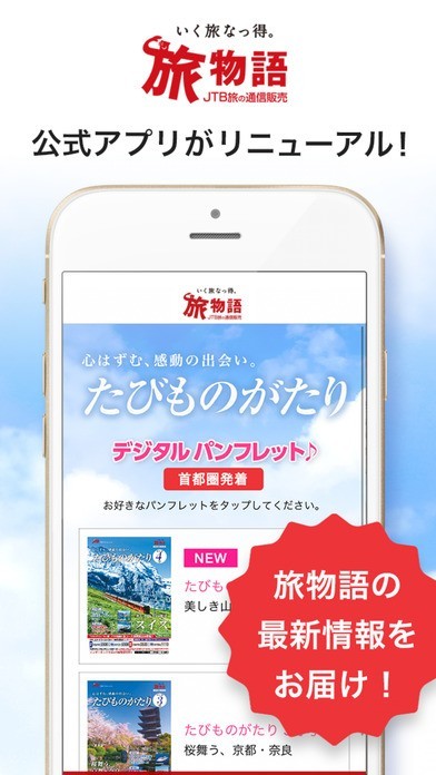 このアプリでは、月刊カタログ「たびものがたり(首都圏発)」の中から売れ筋のツアーやおすすめプランを厳選してご紹介しています。