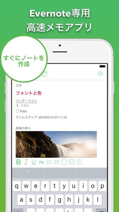 新しく作成するデータだけではなく、元々Evernoteに保存されているデータもサッと呼び出してテキストを追加したり、再度編集しなおしたりできるようになっています。