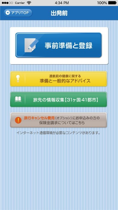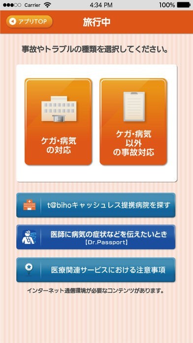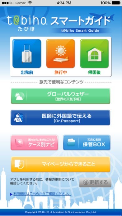 ジェイアイ傷害火災保険に加入している加入者が、旅行へ行った際に旅行中や帰国後にサポートが必要になった際に便利な公式アプリです。海外で事故にあわれた時も、アプリの提携病院が地図上に表示され、病院までナビゲートしてくれます。また、現地の医師に病状を伝える為に6か国語対応の翻訳表示機能も掲載されています。不安な海外でのトラブルも的確に迅速に対応してくれる便利なアプリです。