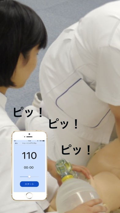 胸骨圧迫のリズムを図る機能に特化したアプリ