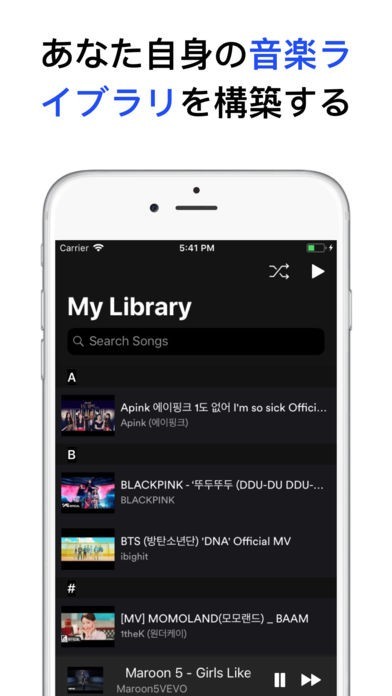 プレイリスト内にお気に入りの楽曲を登録する事が可能