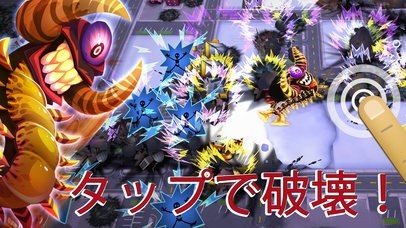 モンスターが主役の新感覚ゲーム!タップ連打で横暴なニンゲンの町を破壊!!