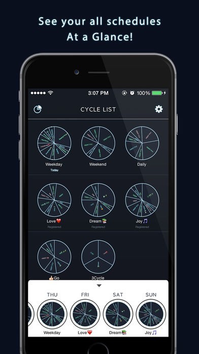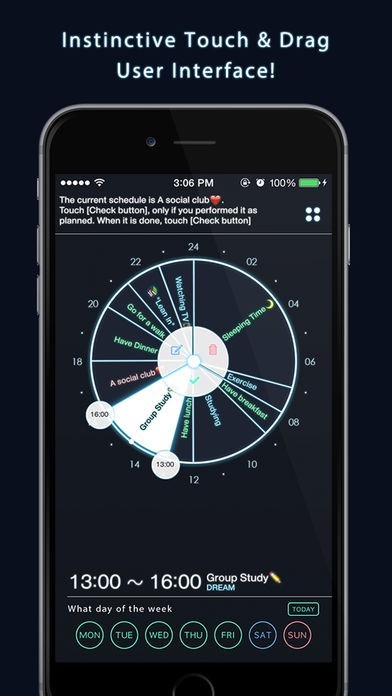 1日のスケジュールを人目で見られる時計形式のUI!!