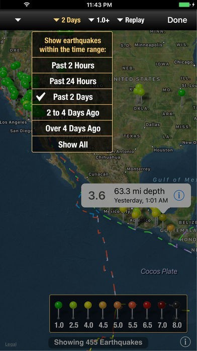 地震の発生時刻を調べる事が可能で、揺れの強さがチェック出来るのも便利