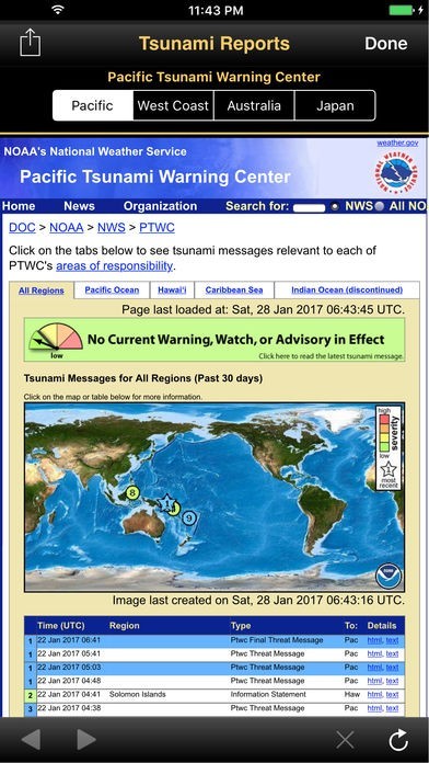 世界各国で起きたマグニチュード1.0以上の地震情報を配信している地震情報配信サービスです。自分の住んでいる地域を設定すると近隣で起きた地震情報を素早く配信してくれます。