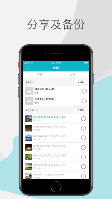● 支持设备无限数量照片、视频、音乐上传服务端
