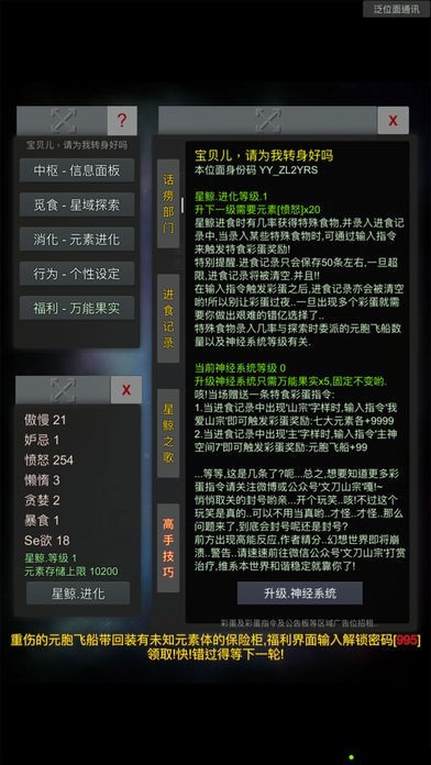 国际惯例.本作依然是文字游戏,并且仍然以放置作为核心玩法.但是相比主神空间系列的放置,轻幻想的放置会更简略纯粹,尽量不增添复杂的东西,同时也因为彻底取消了内购,所以也不必绞尽脑汁去编织各种复杂的套路...从这个方面来讲,也降低了一些复杂设计的动因.