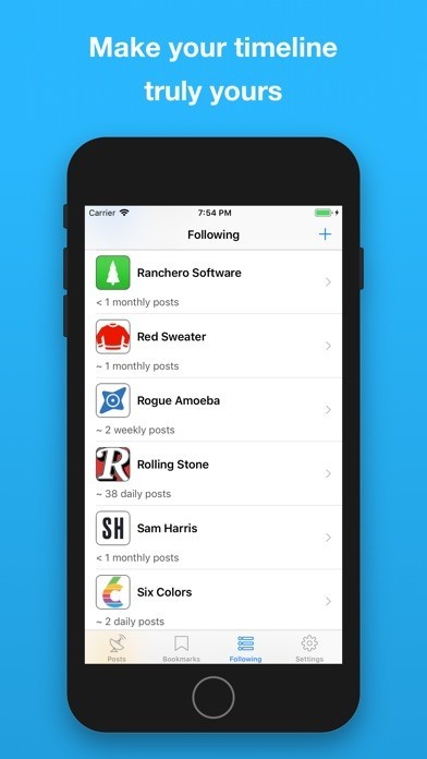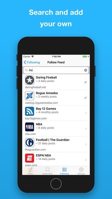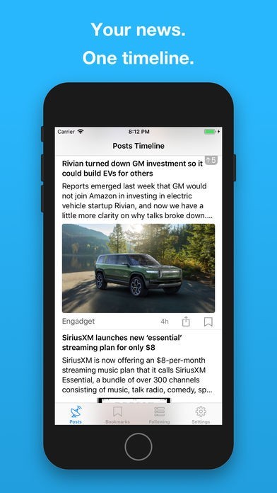 In addition to suggested feeds you can add any RSS-enabled websites and their articles will appear chronologically in your timeline.