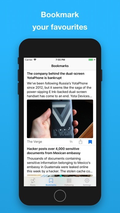 Bookmark any article by clicking in their flag, they will be automatically moved to your Bookmarks tab.