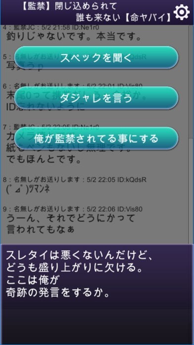 主人公の選んだ選択肢によって、少女の運命が変化します。スレを閲覧していると、時々選択肢が画面上に現れます。よく考えて、一番ふさわしいと思うものを選んでください。