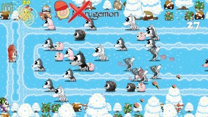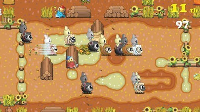 オオカミ達がもちひつじ達を追いかけている!スイカ小猿達とともにオオカミ達を撃退しましょう!