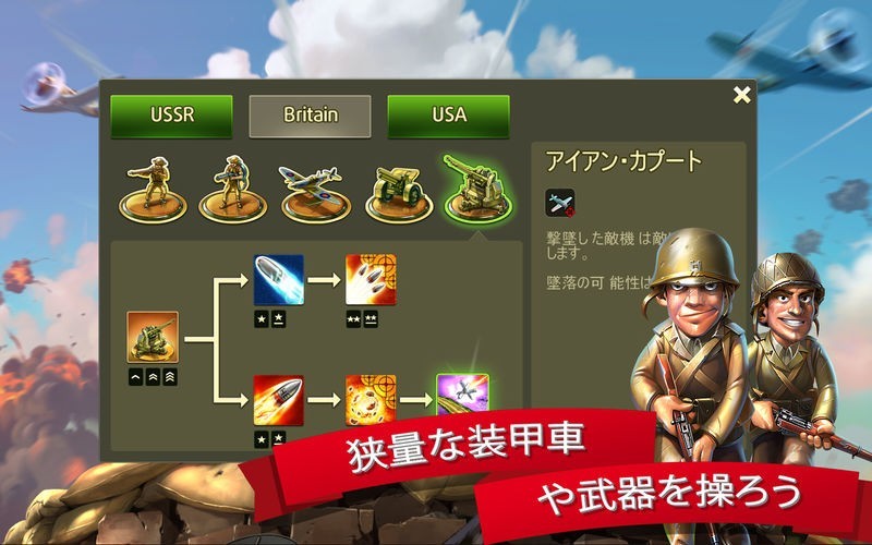 • 戦闘中にいくつかの国の軍隊を使用できます