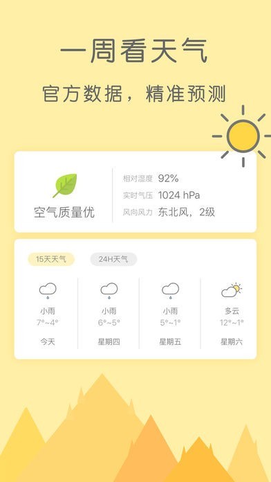 1、实时精准数据:24小时气温、气象变化及时掌握,权威信息更新快人一步;