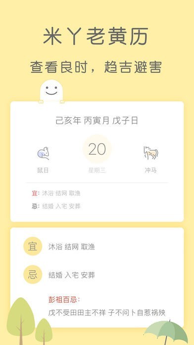 4、传统老黄历:农历查询、每日宜忌、属相相冲、吉神方位、灵签占卜、周公解梦,助您趋吉避凶,好运连连;